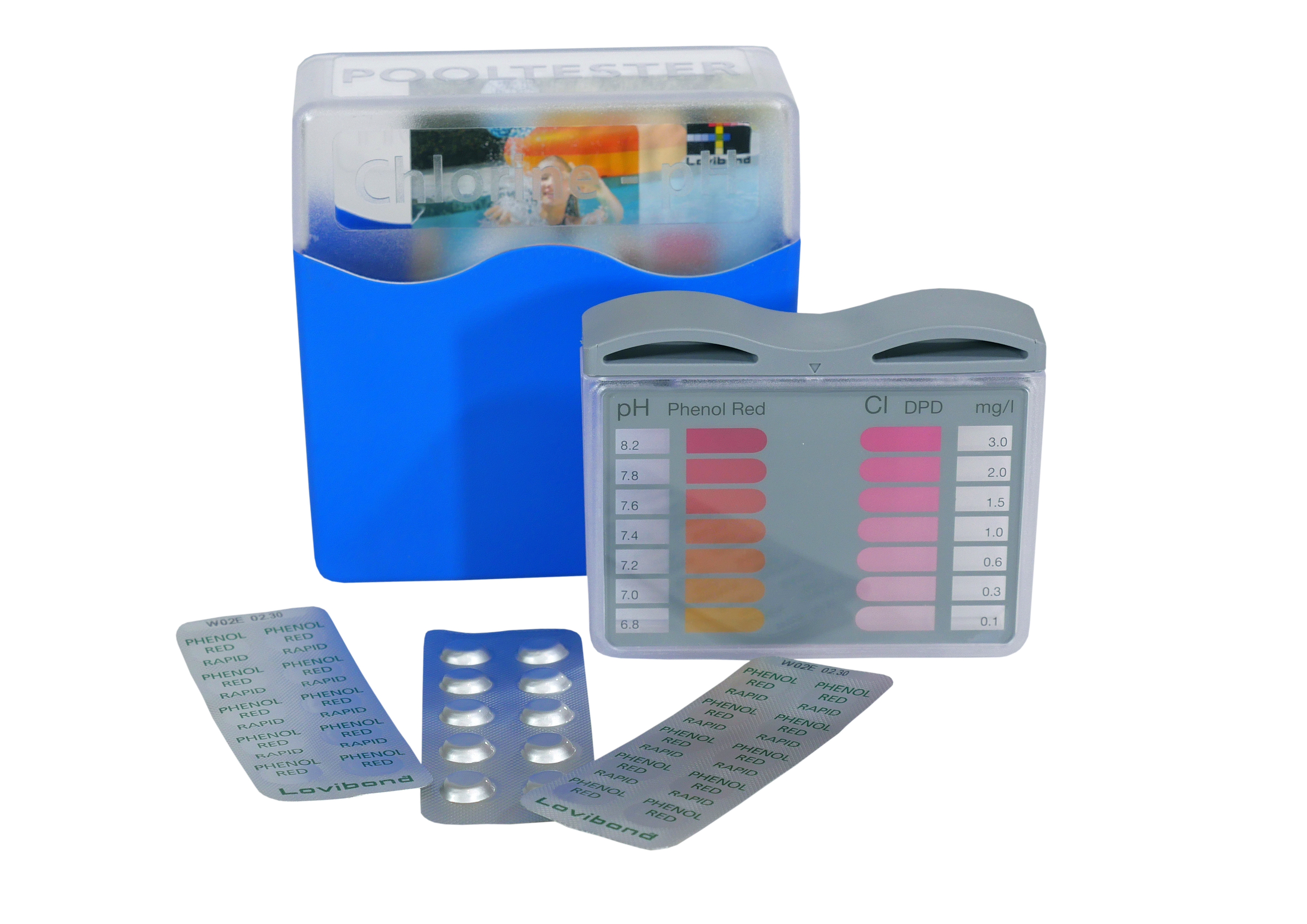 Современный тестер  Хлор / pH 03253  AstralPool для измерения хлора и рН в воде. Поставляется в практичной упаковке с современным дизайном в комплекте с таблетками фенола и DPD-1.